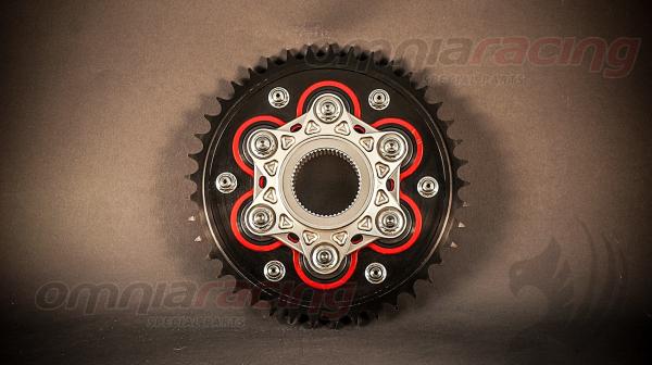 Flangia portacorona modello D-Sei, dedicata ai modelli Ducati con forcellone monobraccio e corona a 6 fori.