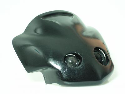 La mascherina è realizzata in vetroresina di alta qualità, permette di essere montata su qualsiasi moto, e di essere verniciata secondo le proprie esigenze.