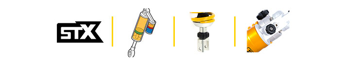 Realizzato con tecnologia Ohlins STX con un pistone interno da 46mm, è un ammortizzatore monotubo a gas ad alta pressione con serbatoio esterno “piggy back” regolabile in estensione (o ritorno) e regolabile in compressione. È possibile scegliere la taratura della molla in base al peso pilota e allo stile di guida in modo completamente gratuito.