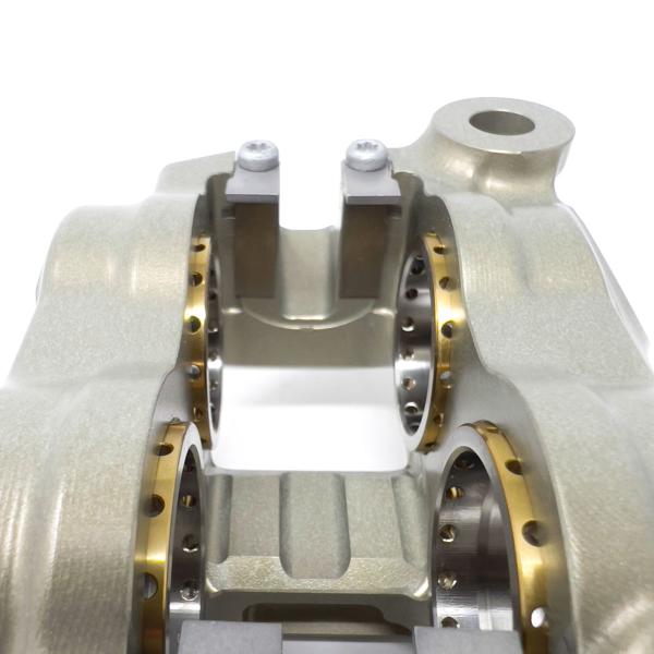 Questa pinza presenta quattro pistoni dal diametro differenziato di 32/36 mm mentre il corpo ha una struttura centrale a ponte, che ne incrementa la rigidezza complessiva.