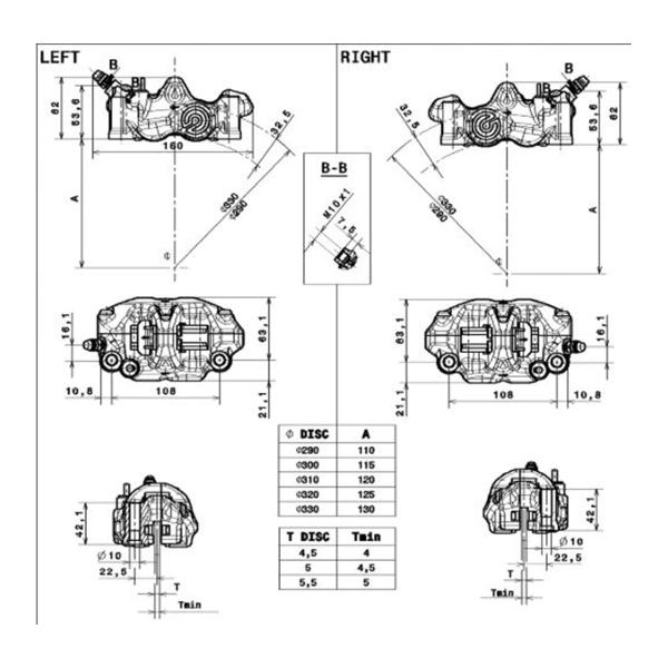 Coppia pinze freno anteriori Brembo Racing P4 32 CNC.484 interasse 108mm