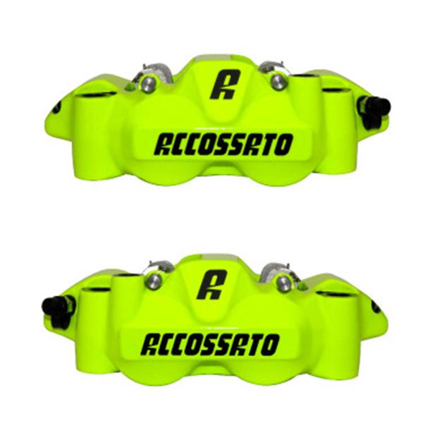 Coppia pinze freno radiali gialla Accossato forgiata monoblocco 108mm pastiglie OR