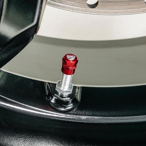 Coppia tappi valvole ruote moto CNC Racing alluminio rosso