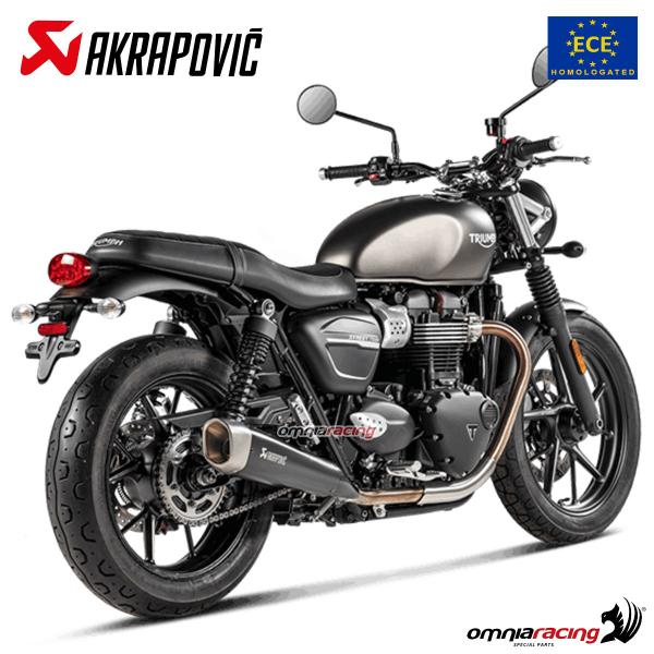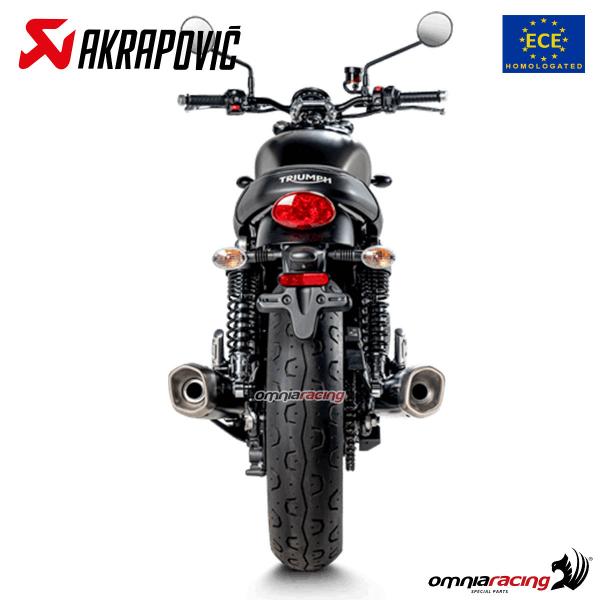 Il sistema di scarico Akrapovic è in grado di offrire guadagni di potenza di 1 kW (1,3 CV) a 5350 giri/min e aumenti di coppia di 1,9 Nm a 5350 giri/min rispetto alla Triumph Street Twin con impianto di serie. Il sound degli scarichi Akrapovic è unico e riconoscibile, grazie alla tecnologia avanzata del silenziatore e di tutti i componenti.