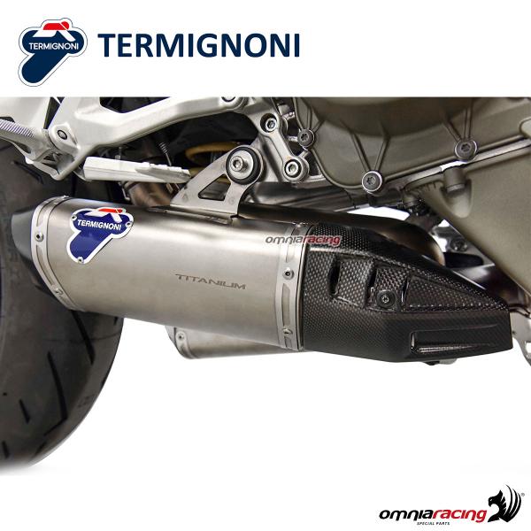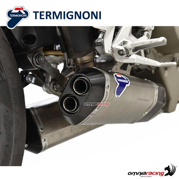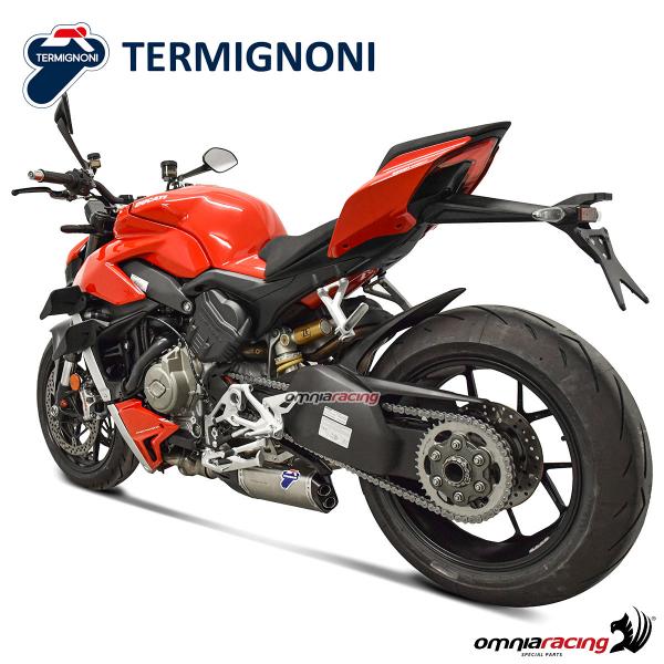 Termignoni ha sviluppato uno scarico per Streetfighter V4 comprensivo di coppia silenziatori Racing, NON omologati, da montare sui collettori originali. I terminali sono realizzati in acciaio con una camicia in titainio, una scritta "TITANIUM" incisa a laser è presente su di essa ed un fondello in alluminio pregiato ricavato dal pieno con lavorazione CNC. I raccordi sono in acciaio inox con 2 paracalore in carbonio.