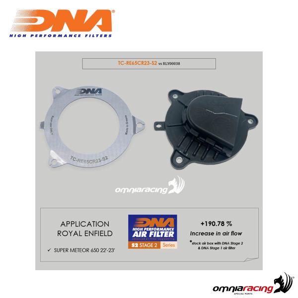 La cover airbox DNA Stage 58TC-RE65CR23-S2 per Royal Enfield Super Meteor 650 2022-2024 è progettata per sostituire l’ingresso in plastica originale della scatola filtro, migliorando prestazioni, flusso d’aria e reattività del motore. Questa soluzione racing elimina i colli di bottiglia del condotto OEM, permettendo all’airbox di sfruttare al massimo il volume disponibile e favorendo una migliore respirazione del motore.