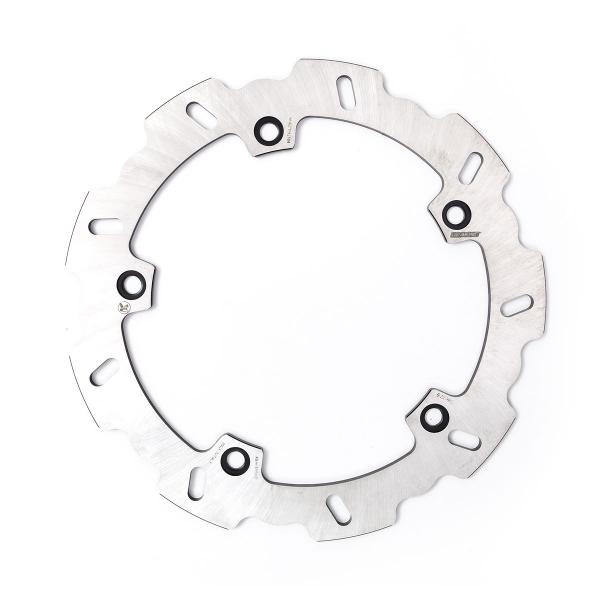 Il design non rotondo del diametro esterno e interno del disco freno consente una migliore espansione radiale del rotore anche nelle condizioni più estreme di calore. I fori di perforazione sono sostituiti da bordi appositamente progettati, ottimizzati per aumentare il processo di rigenerazione delle pastiglie dei freni.