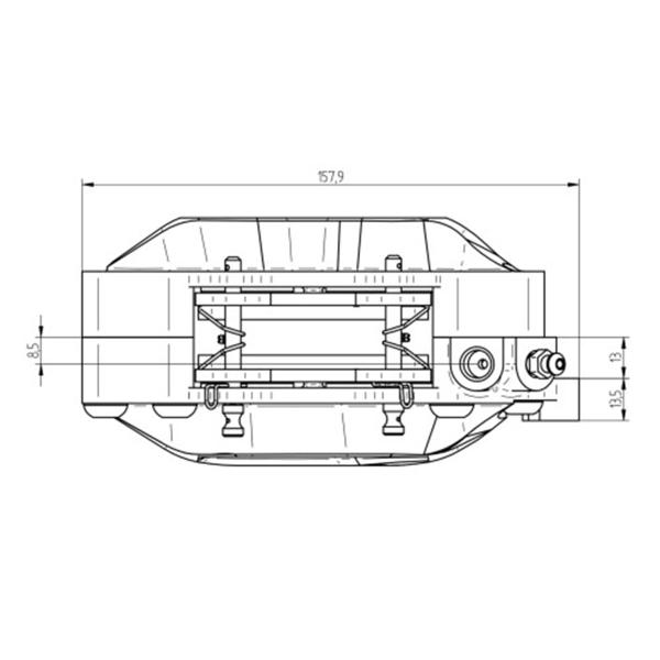 The caliper is designed with a 40mm wheelbase to maximize braking efficiency. This technical specification allows for a quick and precise response during braking and is equipped with 4 aluminum pistons, two with a diameter of 34mm and two with a diameter of 29.5mm. This combination offers an optimal balance between light weight and stopping power, ensuring superior performance.