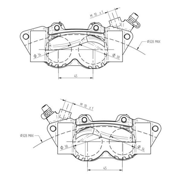 With a 100mm wheelbase and 30mm offset, the caliper is designed to maximize braking power, offering a quick and precise response to rider demands. The 2 aluminum pistons, one with a diameter of 34 mm and the other with a diameter of 38 mm, offer an ideal balance between light weight and braking power, ensuring superior performance and resistance to high temperatures.