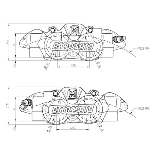 Accossato pair of radial black brake calipers CNC monoblock 108mm pistons titanium