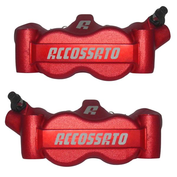 Accossato pair of radial brake calipers red anodized forged monoblock 100mm ST pads