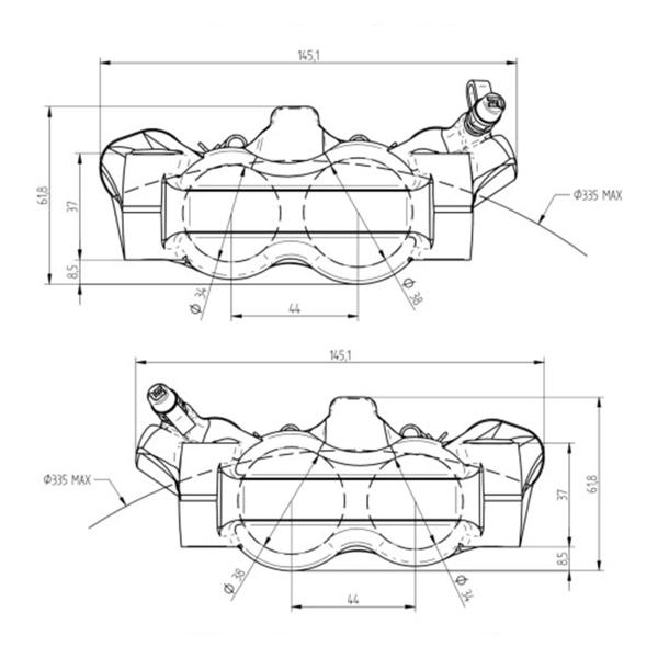 • Pistons: 2 aluminum diam. 34m + 2 aluminum diam. 38mm