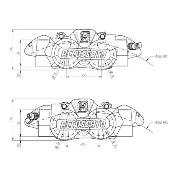 • Pistons: 4 self-ventilated titanium diam. 34mm