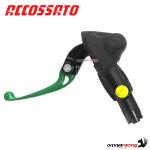 The Accossato CY010 radial brake pump has a piston diameter Pistone10.5mmmm and lever wheelbasemm. The Accossato master cylinder is in aluminium and the brake lever is in color green folding type