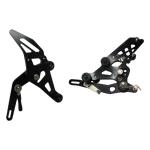 Made from high-quality aluminum, these footpegs offer maximum customization and enhanced grip with knurled footrests and toe pegs. Designed for specific models, they provide a setback riding position and feature aluminum heel guards. The gear shift can be configured in standard or reverse mode, making them ideal for sport and racing use.