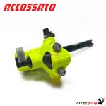 The Accossato CY043 radial brake pump has a piston diameter 19mm and lever wheelbase 20mm. The Accossato master cylinder is in aluminium fluorescent yellow painted pump body and the brake lever is long in color black revolution type