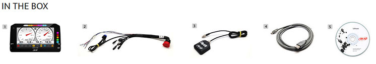 • MXP, GPS Module with cable, USB cable, 37 pins standard harness, Race Studio 3 software.