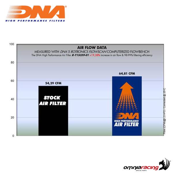 The DNA R-Y1SC09-01 air filter for Yamaha YP180 Majesty are the ultimate expression of technology to ensure optimal engine breathing for your motorcycle, whether you're on the race track, city streets, or off-road. They are built with a high-quality plastic frame to prevent any deformation of the filter inside the airbox and are manufactured to precise mounting standards. The filter media consists of 4 layers of high-quality cotton wrapped in a metal mesh, allowing the filter to maintain its shape even under high air pressures, ensuring consistent efficiency and excellent performance of the filtering material. DNA air filters are designed to achieve maximum performance from your motorcycle's engine by providing increased clean air flow. In fact, these air filters boast an efficiency rate of 98-99%.