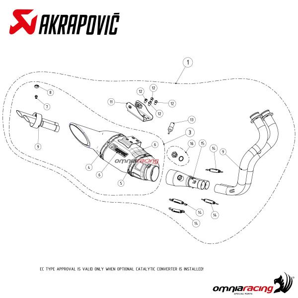 The installation of the Akrapovic muffler is easy without modifications, plug and play, it does not require remapping of the motorcycle control unit, anyway for maximum performance of this complete system it is preferable to proceed with a remapping. The kit supplied with fittings, clamps, bolts and everything needed for assembly.