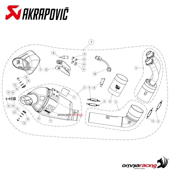 The installation of the Akrapovic muffler is easy without modifications, plug and play, it does not require remapping of the motorcycle control unit, anyway for maximum performance of this complete system it is preferable to proceed with a remapping. The kit supplied with fittings, clamps, bolts and everything needed for assembly.