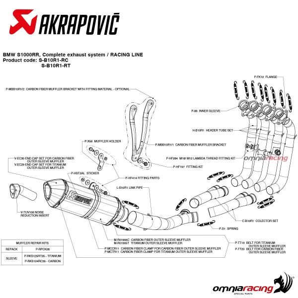 The Akrapovic S-B10R1-RC for BMW S 1000 RR / ABS is a complete system Racing Line perfect for improving your bike's performance on the road and on the track. This exhaust system is made from racing materials with a carbon exhaust and stainless steel headers and is designed exclusively for this bike, offering increased horsepower, light weight, increased torque and a racing sound.