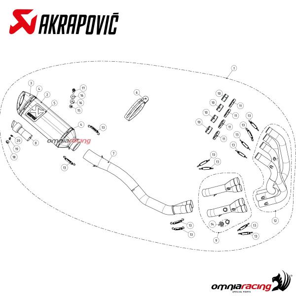 The installation of the Akrapovic muffler is easy without modifications, plug and play, it does not require remapping of the motorcycle control unit, anyway for maximum performance of this complete system it is preferable to proceed with a remapping. The kit supplied with fittings, clamps, bolts and everything needed for assembly.