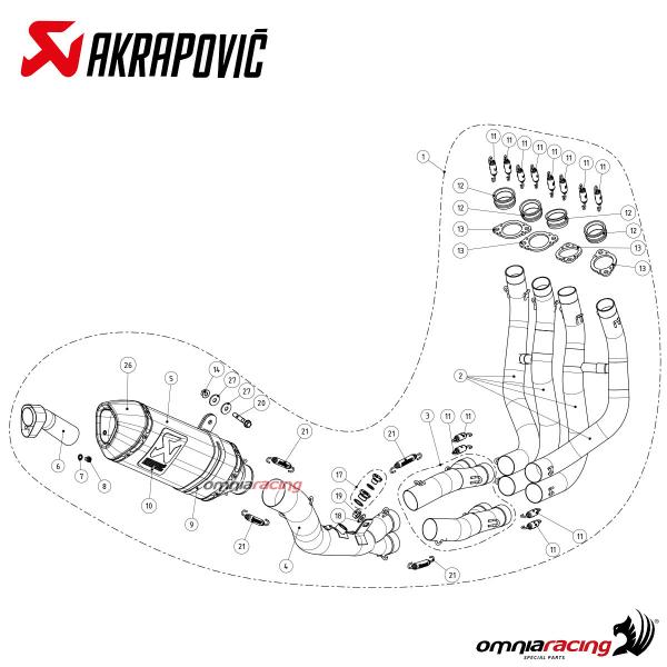 The installation of the Akrapovic muffler is easy without modifications, plug and play, it does not require remapping of the motorcycle control unit, anyway for maximum performance of this complete system it is preferable to proceed with a remapping. The kit supplied with fittings, clamps, bolts and everything needed for assembly.