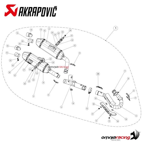 The installation of the Akrapovic muffler is easy without modifications, plug and play, it does not require remapping of the motorcycle control unit, anyway for maximum performance of this complete system it is preferable to proceed with a remapping. The kit supplied with fittings, clamps, bolts and everything needed for assembly.
