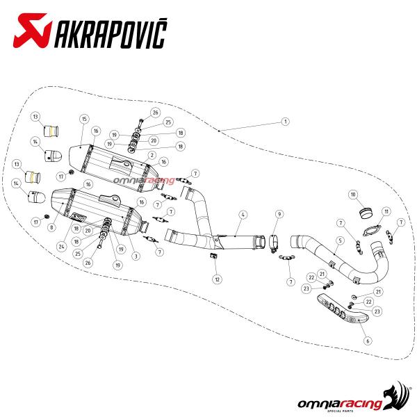 The installation of the Akrapovic muffler is easy without modifications, plug and play, it does not require remapping of the motorcycle control unit, anyway for maximum performance of this complete system it is preferable to proceed with a remapping. The kit supplied with fittings, clamps, bolts and everything needed for assembly.