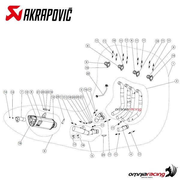 The installation of the Akrapovic muffler is easy without modifications, plug and play, it does not require remapping of the motorcycle control unit, anyway for maximum performance of this complete system it is preferable to proceed with a remapping. The kit supplied with fittings, clamps, bolts and everything needed for assembly.
