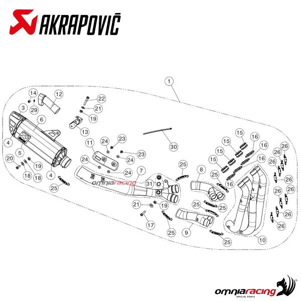 The installation of the Akrapovic muffler is easy without modifications, plug and play, it does not require remapping of the motorcycle control unit, anyway for maximum performance of this complete system it is preferable to proceed with a remapping. The kit supplied with fittings, clamps, bolts and everything needed for assembly.