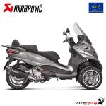 The Akrapovic Piaggio MP3 500/LT is Euro 4 approved and complies with the approval requirements for acoustic emissions, provided with a CE/ECE homologation certificate.
