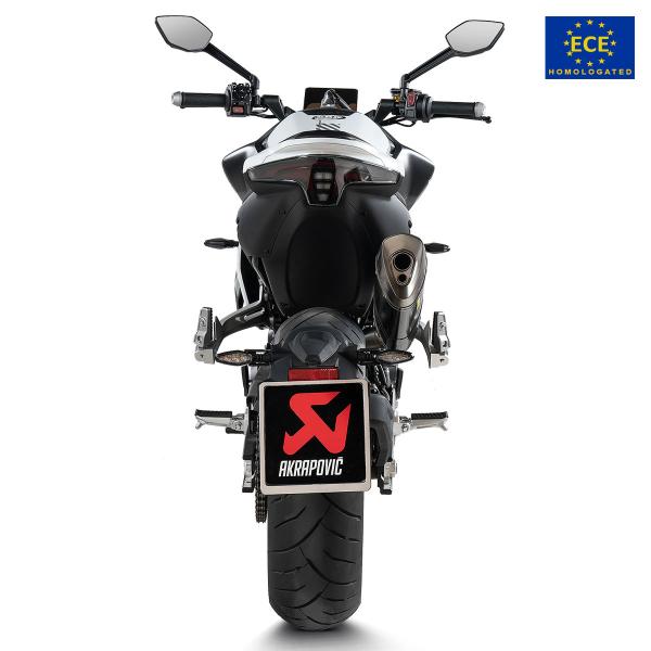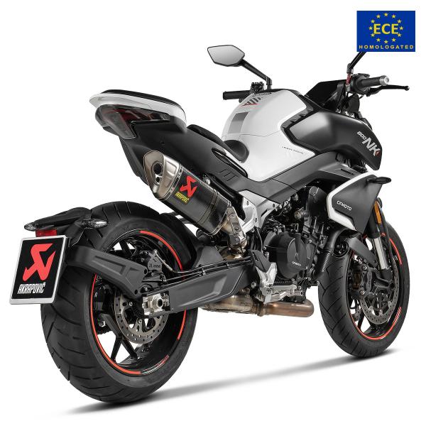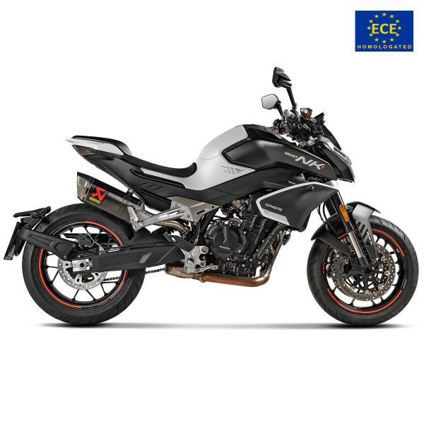 The Akrapovic CFmoto 800NK is Euro 5 approved and complies with the approval requirements for acoustic emissions, provided with a CE/ECE homologation certificate.
