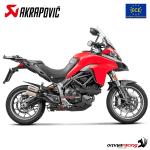 The Akrapovic Ducati Multistrada 950/1200 Enduro is approved and complies with the approval requirements for acoustic emissions, provided with a CE/ECE homologation certificate.