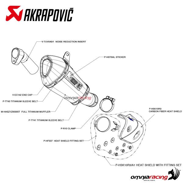 The Akrapovic Kawasaki ZX10R Ninja is approved and complies with the approval requirements for acoustic emissions, provided with a CE/ECE homologation certificate.
