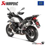The Akrapovic Moto Guzzi V85TT is Euro 4 approved and complies with the approval requirements for acoustic emissions, provided with a CE/ECE homologation certificate.