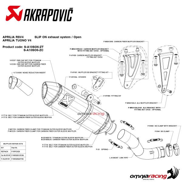 The Akrapovic S-A10SO6-ZC exhaust for Aprilia RSV4R / Factory / APRC is the perfect Slip-On exhaust to improve the performance of your bike. Made of fibra di carbonio and designed exclusively for this bike, it provides an increase in horsepower, weight reduction, greater torque, and immersive sound.