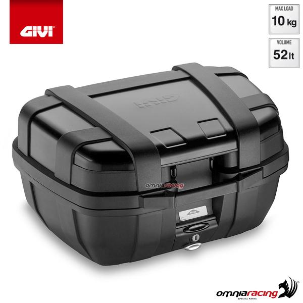 The 52 liter Monokey TRK52 top case, has been designed in ABS with aluminum inserts resistant to atmospheric agents, suitable for all conditions of use, and is equipped with an airtight seal that does not allow the infiltration of water or liquids ensuring the total protection for objects placed inside. Made of technopolymers reinforced with glass fibers, it guarantees considerable structural rigidity. Including brackets and bolts for perfect assembly. It does not require modifications or other accessories to mount these cases Included rear attachment in anodized aluminum specific for MONOKEY® top case, black (maximum load 6Kg / does not allow the assembly of a stop light kit on the suitcase and / or device for remote-controlled opening of the suitcase)