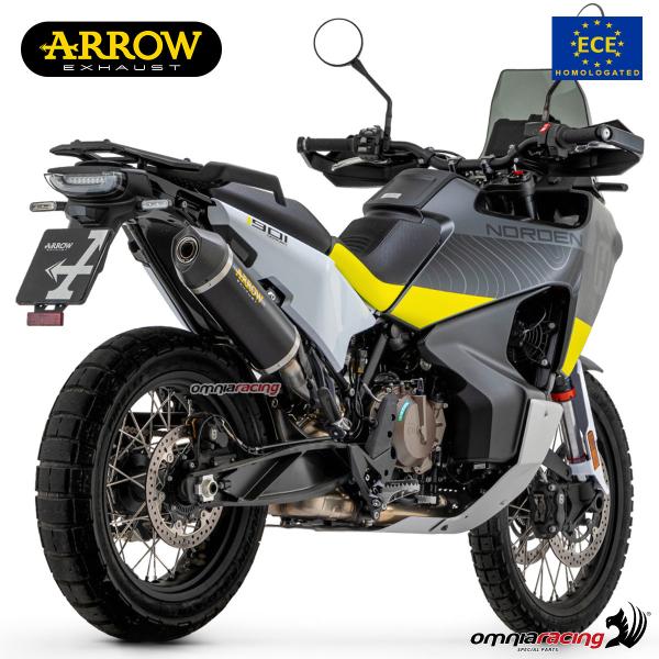 Born to withstand extreme stresses, the Arrow Sonora exhaust was developed in off-road competitions, dedicated to all the latest generation Maxi Enduros. With a unique sound, the Arrow Sonora improves the performance of the bike, the body is made entirely of titanium, with a compact and light shape. New thermo and sound absorbing materials reduce the heat developed while improving the sound.