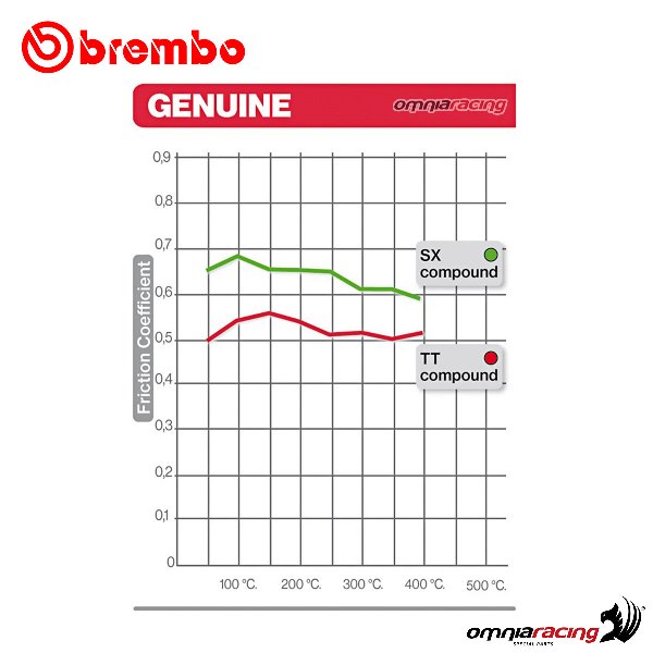 The sintered compound for Genuine Brembo is composed of the exact material developed by Brembo for motorcycle manufacturers, in short the original equipment pads (OEM). The sintered Genuine are identified by a final number in the code which varies from 1 to 99 and represents the value of the friction coefficient of the compound, the higher the value the higher the friction coefficient of the brake pad.