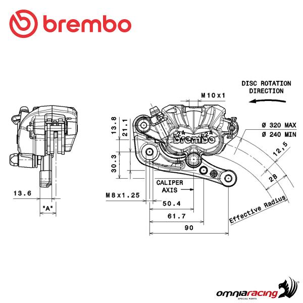 Brembo PF2.24 SX Silver floating left brake caliper wheelbase 90mm