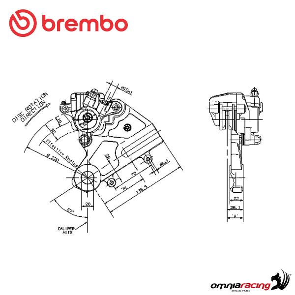Brembo PF32 A DX Silver floating right brake caliper wheelbase 70mm
