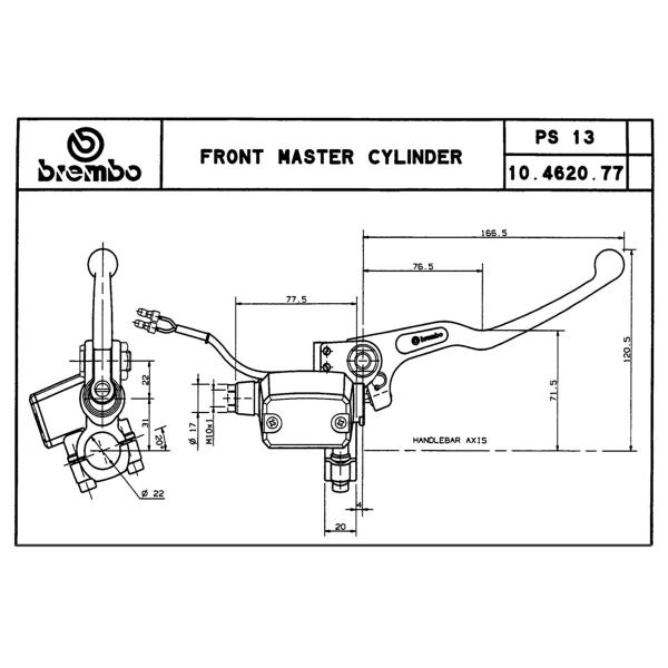Brembo PS13 Black Axial Front Brake Master Cylinder black lever Integrated reservoir with switch