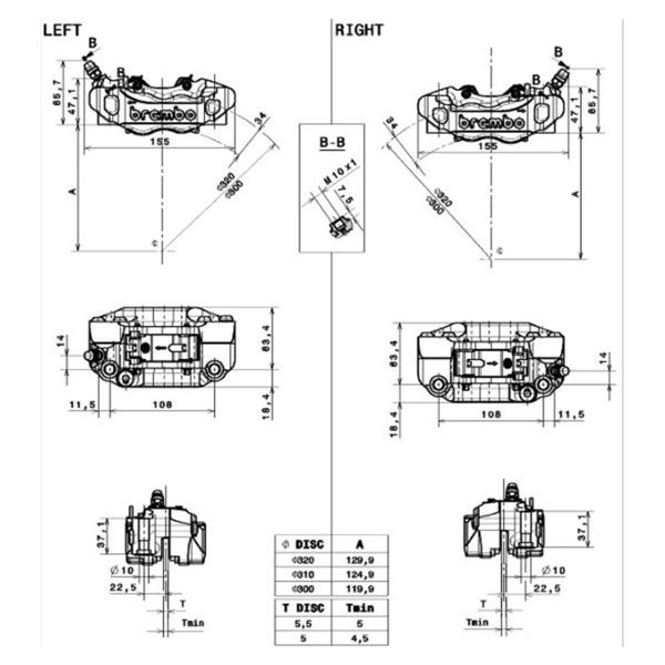 Brembo Racing GP4RB front brake calipers wheelbase 108mm