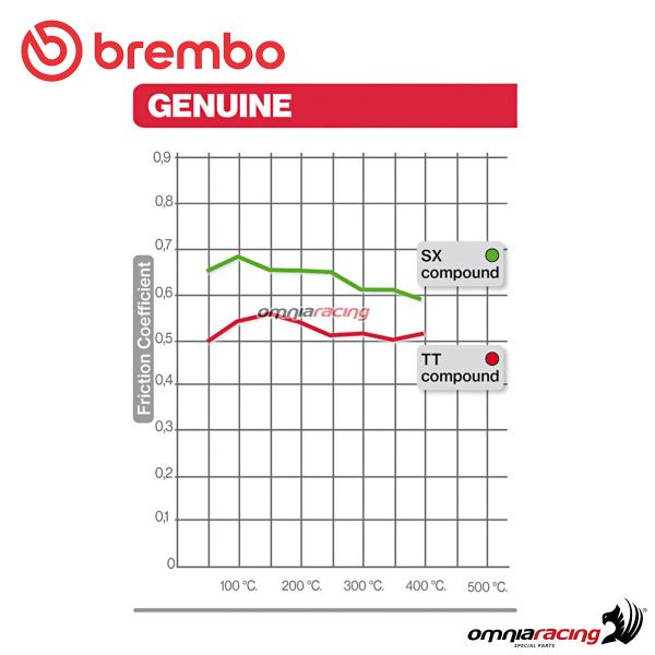 The sintered compound for Genuine Brembo is composed of the exact material developed by Brembo for motorcycle manufacturers, in short the original equipment pads (OEM). The sintered Genuine are identified by a final number in the code which varies from 1 to 99 and represents the value of the friction coefficient of the compound, the higher the value the higher the friction coefficient of the brake pad.