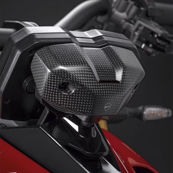 Ducati Performance 96981322AA The Carbon Instrument Cover is an extraordinary accessory that improves the appearance and functionality of your motorcycle. Made with hi-tech materials, this cover stands out for the elegance and protection it offers.