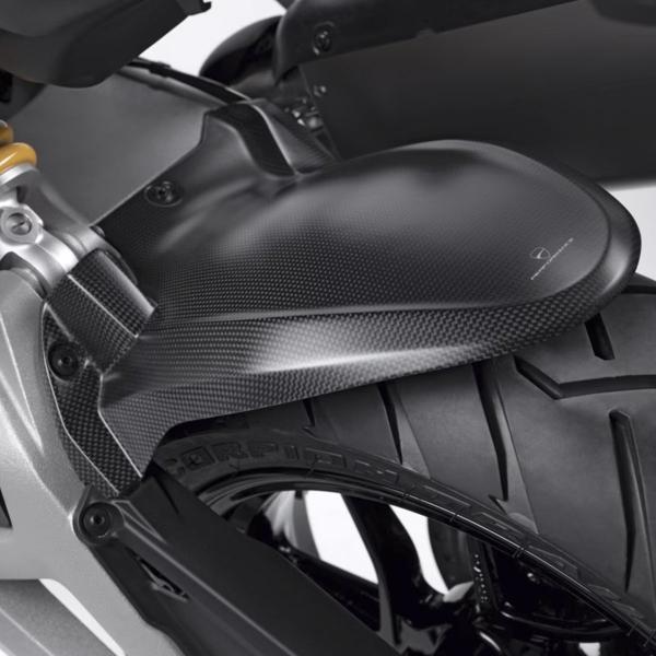 Ducati Performance 96981391AA This rear mudguard is the ideal accessory for those who love the tracks and want to maximize the performance of their motorbike. It is designed to be compatible with the use of track tires and tire warmers, offering a significant advantage during track driving sessions. Its clean and streamlined design with a purely racing imprint improves the appearance of your motorbike. Made of high-quality carbon fiber, this fender is lightweight and durable, just how you want it for your adventures.