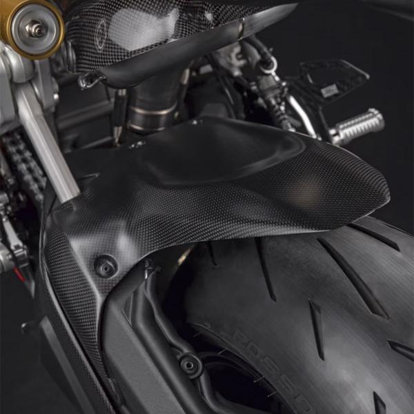 Ducati Performance 96900312A This rear mudguard is the ideal accessory for those who love the tracks and want to maximize the performance of their motorbike. It is designed to be compatible with the use of track tires and tire warmers, offering a significant advantage during track driving sessions. Its clean and streamlined design with a purely racing imprint improves the appearance of your motorbike. Made of high-quality carbon fiber, this fender is lightweight and durable, just how you want it for your track or street adventures.