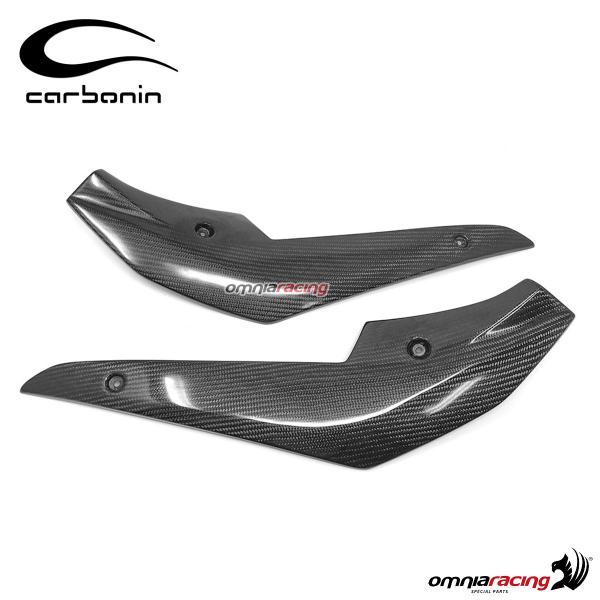 Component made of carbon fiber and epoxy resin, excellent lightness and finishing, perfectly compatible with the original attacks, is shipped already drilled ready for installation.