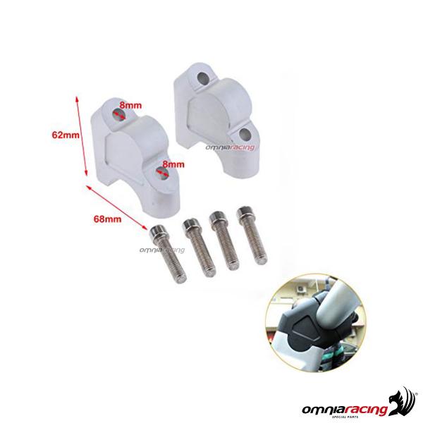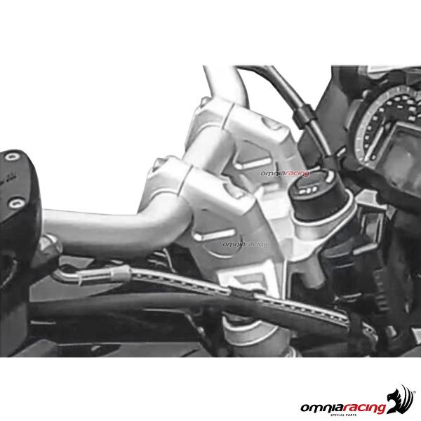 The Omnia Racing risers are built with high quality aluminum made with computerized numerical control. Thanks to the use of these Risers, the raising and retraction of the handlebar allows the rider a more upright riding position, bringing advantages in terms of driving safety and comfort, reducing back and arm fatigue. Light and functional, they allow 30 mm lifting and the 24 mm retraction of your BMW handlebar. A product of quality and style, in fact, is placed on the side of the Riser, both inside and outside of a fully CNC 3D design. Durable over time thanks to the anodizing treatment, they resist weathering.